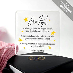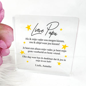 Doe vandaag nog een prachtig plexiglas Aandenken met persoonlijke boodschap cadeau. Lasergegraveerd met eigen namen en een dikte van 1 cm.