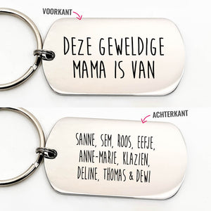 Mama is de liefste, mama is er altijd voor jou om je te troosten, knuffelen of gewoon met goed advies. Veras mama met deze mooie handgemaakte "Deze geweldige mama is van" RVS sleutelhanger. Door namen toe te voegen word dit een nog persoonlijker cadeau