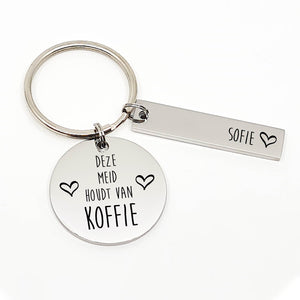 Koffie staat voor jou gelijk aan adem halen. Zonder koffie kom jij de dag niet door. Onze "Deze Meid Houd Van Koffie" RVS sleutelhanger is dan ook perfect voor jou. de sleutelhanger word met zorg handgemaakt en is te personalizeren met een naam.