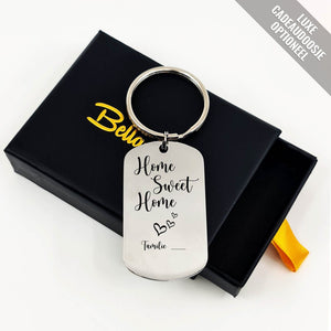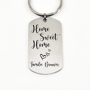 Home sweet home sleutelhanger Sleutelhanger. Op veler verzoek is het nu mogelijk om ook een eigen tekst op de dogtag te zetten. Wie ga jij verrassen met deze unieke gepersonaliseerde sleutelhanger?