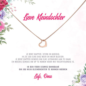 Onze "Ik Ben Voor Eeuwig Dankbaar Kleindochter Ketting" wordt geleverd met een gepersonaliseerd kaartje.