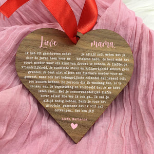 Ik heb dit geschreven zodat je altijd zult weten wat je door de jaren heen voor me betekend hebt. Je bent echt het soort moeder waar elk kind van droomt te hebben. Je liefde, je vriendelijkheid, je eindeloze steun en vrijgevigheid kennen geen grenzen. Je bent niet alleen een dierbare moeder voor me geweest, maar ook het belangrijkste rolmodel dat iemand ooit zou kunnen hebben. De persoon die ik vandaag ben, is te danken aan de begeleiding en voorbeeld dat je me hebt laten zien... Met je onvoorwaardelijke liefde boven alles! Hoe ver ik ook ga... Ik zal je altijd nodig hebben. Dank je voor het grootste geschenk dat ik ooit zal ontvangen... dat ben jij!