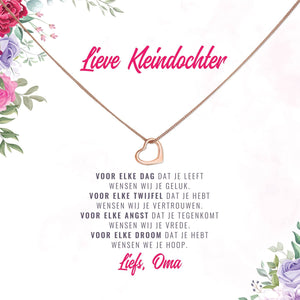 Onze "Kleindochter Voor Elke Dag, Twijfel, Angst En Droom Ketting" wordt geleverd met een gepersonaliseerd kaartje.
