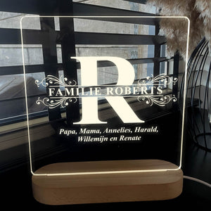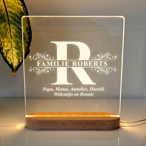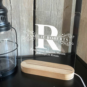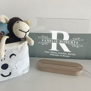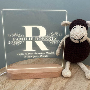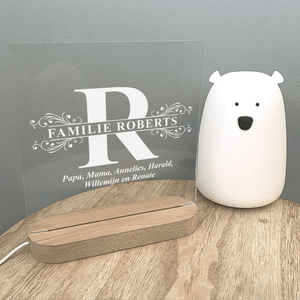 Gevonden! Bij Bella Mia hebben we nu een prachtig lampje die je compleet kan personaliseren met eigen initiaal, namen en zelf verzonnen tekst als onderschrift.