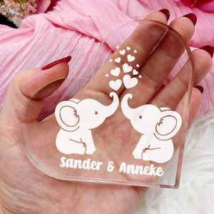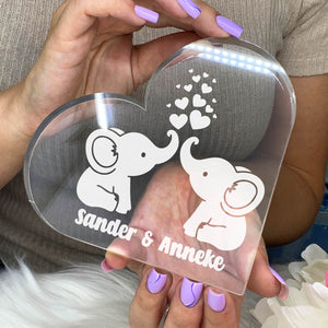 Doe vandaag nog een prachtig plexiglas hart met persoonlijke boodschap cadeau. Lasergegraveerd met eigen namen en een dikte van 1 cm.