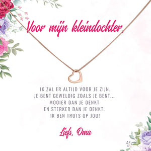 Maak jouw cadeautje persoonlijk met de naam van je Dochter, Moeder, Oma, etcetera. Wij Printen jouw kaartje en verpakken het geheel zorgvuldig in een luxe cadeaudoosje. Binnen elkele dagen heb jij jouw bestelling op de mat!