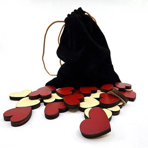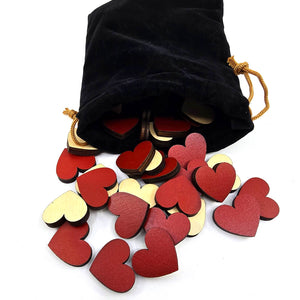 De harten zijn aan de ene kant beige/houtkleurig en aan de andere zijde zijn ze diep rood. Zo kan jij ze gebruiken voor verschillende gelegenheden.