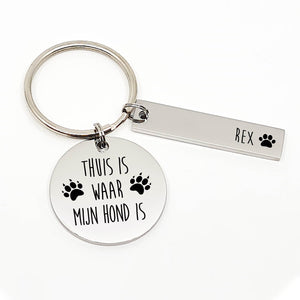 Wanneer je thuis komt en je trouwe viervoeter staat enthousiast voor de deur te wachten, voel je je toch ook echt pas thuis? Of ken jij iemand die niet kan wachten om bij zijn of haar hondenkindje te zijn? Dan is deze 'Thuis is waar mijn hond is' RVS sleutelhanger een origineel cadeau! Je kunt de sleutelhanger personaliseren door er de naam van de hond er aan toe te voegen!