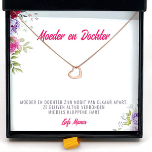 Onze "Verbonden Middels Kloppend Hart Ketting" wordt geleverd met een gepersonaliseerd kaartje.