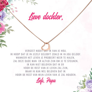 Onze "Vergeet Nooit Dat Ik Van Je Hou Ketting" wordt geleverd met een gepersonaliseerd kaartje.