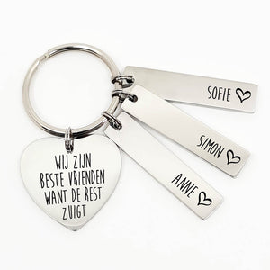 Beste vrienden zijn moeilijk te vinden, vooral als de rest van de wereld zuigt! Gelukkig heb jij een beste vriend(in) gevonden en dan is het leuk om te laten weten hoe je over diegene denkt. Geef hem of haar deze ' Wij zijn beste vrienden want de rest zuigt' RVS sleutelhanger en personaliseer je cadeau door elkaars namen er aan toe te voegen!