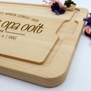 Jouw papaa is de liefste, hij staat altijd voor je klaar en staat graag in de keuken. Verras papa nu met deze mooie beuken borrelplank. Je kunt deze originele cadeau personaliseren door er zelf namen aan toe te voegen!