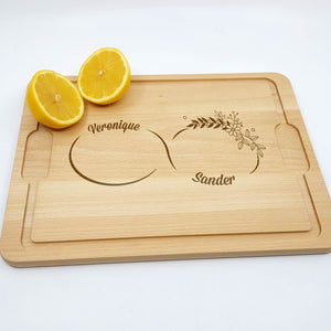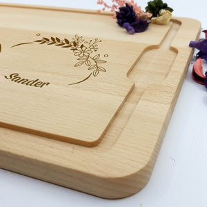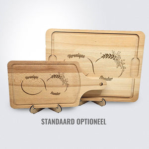 Let op: Hout is een natuurproduct. Hierdoor zal elke gravure iets afwijken van de foto's. Dit komt simpelweg omdat de nerf van het hout bepaald hoe donker de gravure wordt. Dit maakt elke borrelplank wel 100% uniek!