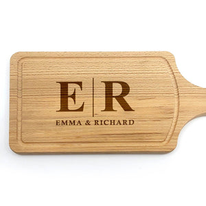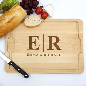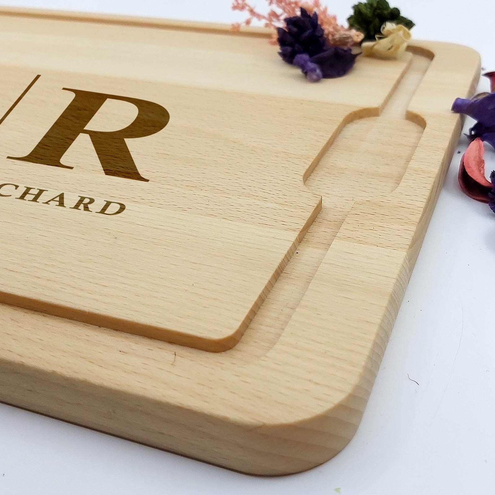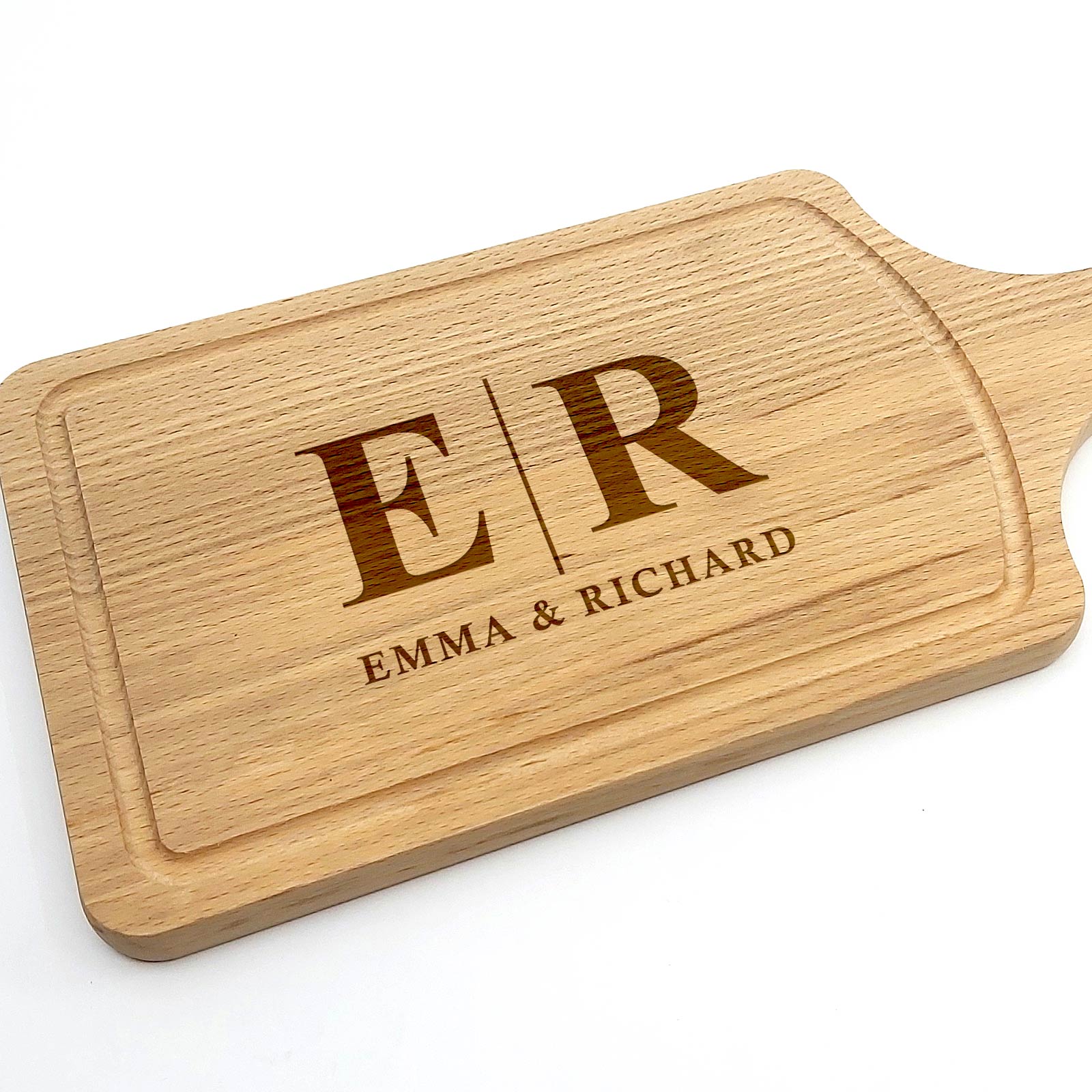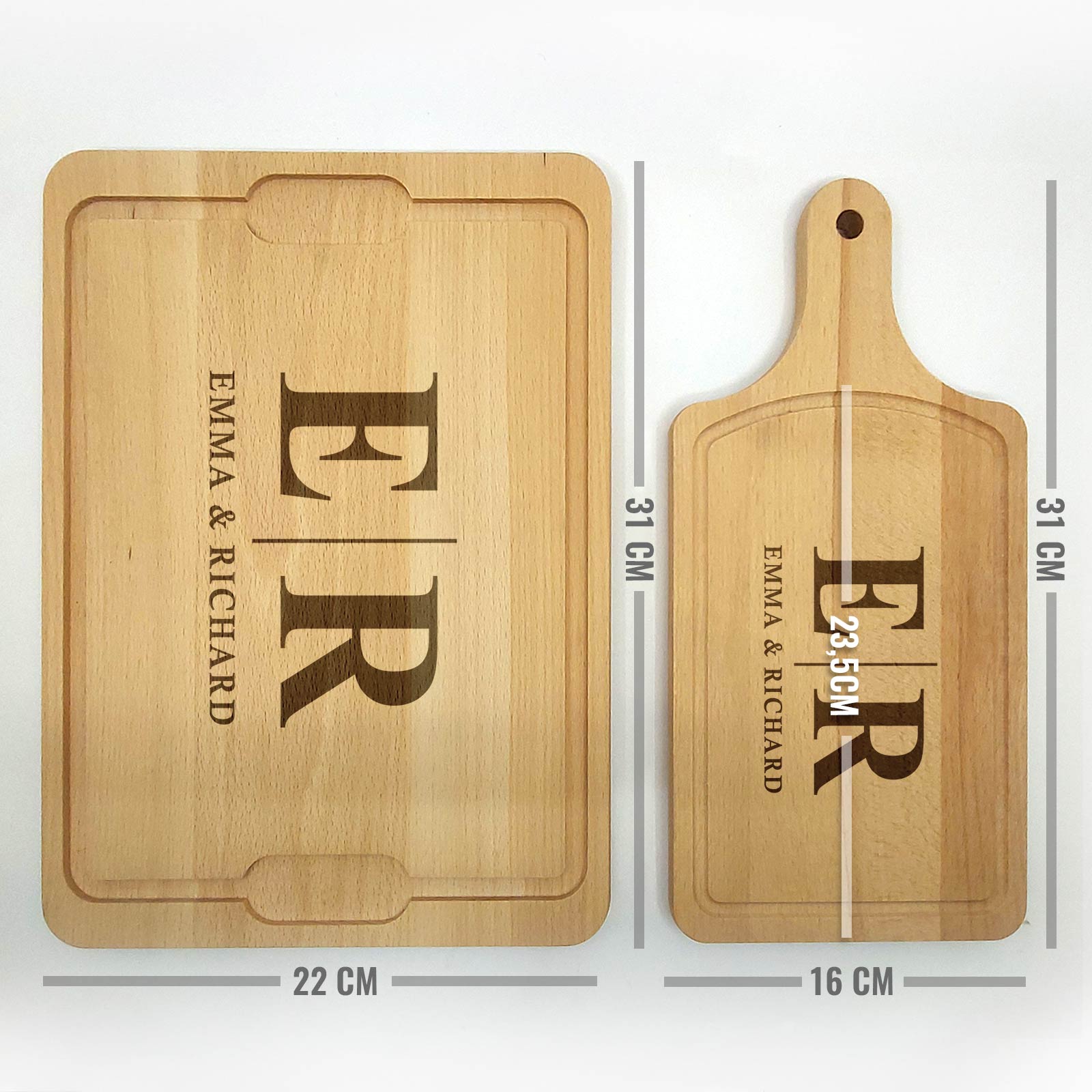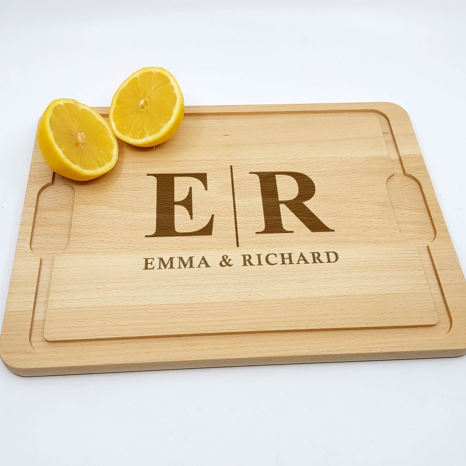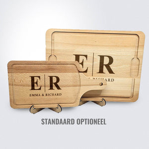 Liefdesinitialen en eigen namen op deze prachtige snijplank
