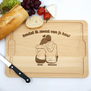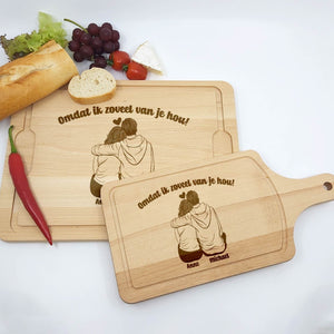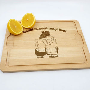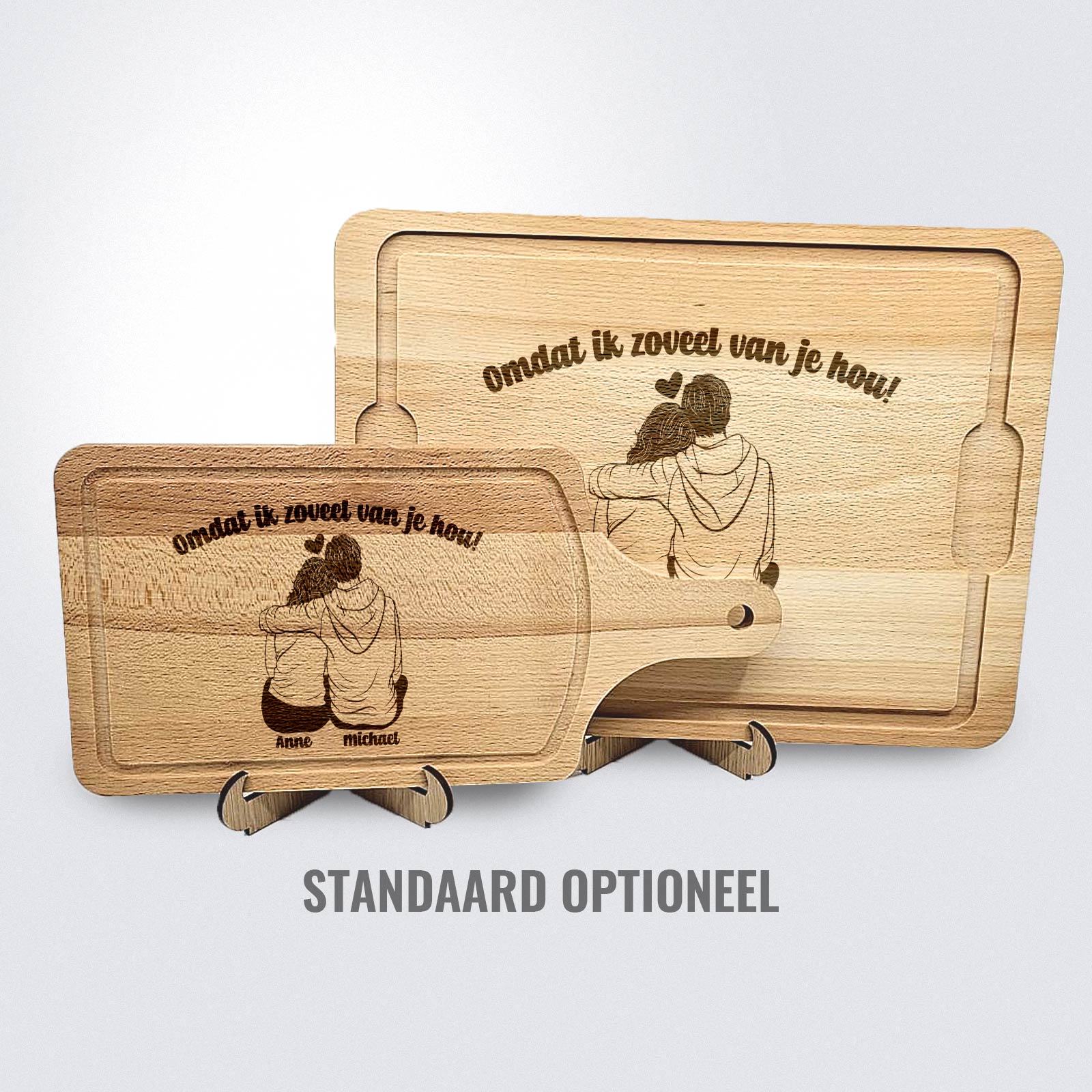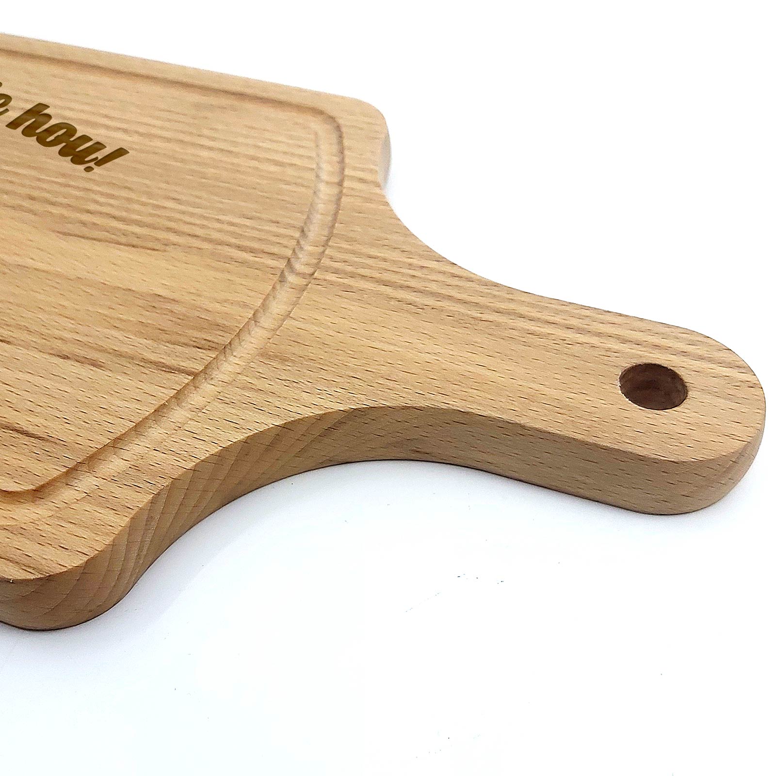 Deze Gegraveerde Hapjesplank is een echte eye-catcher. Wij gebruiken alleen hoogwaardig Europees hout. Elke hapjesplank wordt vooraf behandeld, waardoor het niet kromtrekt door vocht of temperatuurwisselingen. Deze borrelplank is zowel geschikt om op te snijden als te serveren.