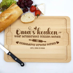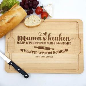 Deze Gegraveerde Hapjesplank is een echte eye-catcher. Wij gebruiken alleen hoogwaardig Europees hout. Elke hapjesplank wordt vooraf behandeld, waardoor het niet kromtrekt door vocht of temperatuurwisselingen. Deze borrelplank is zowel geschikt om op te snijden als te serveren.