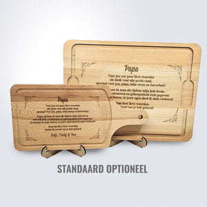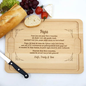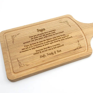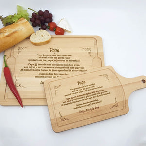 Jouw papa is de liefste, hij staat altijd voor je klaar en staat graag in de keuken. Verras papa nu met deze mooie beuken borrelplank. Je kunt deze originele cadeau personaliseren door er zelf namen aan toe te voegen!