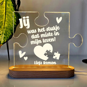 Verras je partner met dit bijzondere ledlampje, vormgegeven als een uniek puzzelstukje. Dit symbolische cadeau is de perfecte manier om te laten zien dat jullie bij elkaar horen en de liefde te vieren.