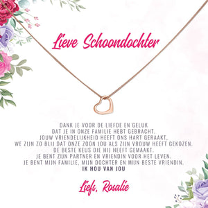 Onze "Schoondochter, Dank Je Voor De Liefde En Geluk Ketting" wordt geleverd met een gepersonaliseerd kaartje.