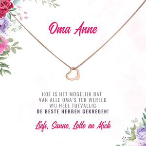 Onze "Beste Oma Ter Wereld Ketting" wordt geleverd met een gepersonaliseerd kaartje.