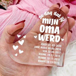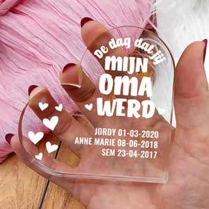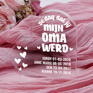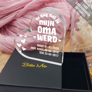 Doe vandaag nog een prachtig plexiglas hart met persoonlijke boodschap cadeau. Lasergegraveerd met eigen namen en een dikte van 1 cm.