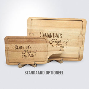 Let op: Hout is een natuurproduct. Hierdoor zal elke gravure iets afwijken van de foto's. Dit komt simpelweg omdat de nerf van het hout bepaald hoe donker de gravure wordt. Dit maakt elke borrelplank wel 100% uniek!