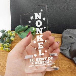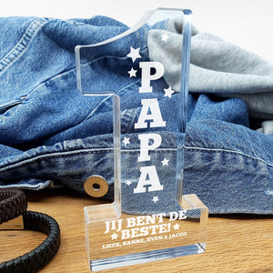 Doe vandaag nog een prachtig plexiglas #1 Award cadeau. Lasergegraveerd met eigen namen van de kinderen.