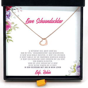 Onze "Schoondochter, Ik Ben Gezegend Met Jou In Mijn Leven Ketting" wordt geleverd met een gepersonaliseerd kaartje.