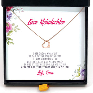 Onze "Vergeet Nooit Hoe Trots Wij Zijn Op Jou Kleindochter Ketting" wordt geleverd met een gepersonaliseerd kaartje.