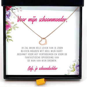 Onze "Voor Mijn Schoonmoeder Ketting" wordt geleverd met een gepersonaliseerd kaartje.