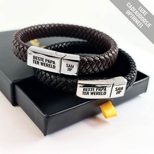 Maak het perfecte gepersonaliseerde Cadeau met maximaal 4 namen. Onze armbanden zijn verkrijgbaar in bruin en zwart leer.