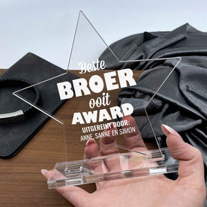 Doe vandaag nog een prachtig plexiglas Award met eigen namen cadeau. Lasergegraveerd met eigen namen van de kinderen.