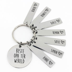 Van alle opa's op deze wereld is jouw opa de beste ter wereld! Help hem hiermee herinneren door hem deze originele sleutelhanger te geven waar alle kleinkinderen (of gewoon alleen jij!) aan gehangen kan worden.