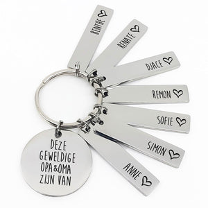 Heb jij ook een lieve opa & oma? Laat zien dat je ze waardeert en geef hun dit uniek gepersonaliseerde 'Deze geweldige opa & oma zijn van' sleutelhanger cadeau. Zo zullen ze altijd aan je denken!
