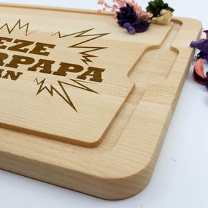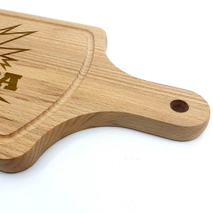 Deze Gegraveerde Hapjesplank is een echte eye-catcher. Wij gebruiken alleen hoogwaardig Europees hout. Elke hapjesplank wordt vooraf behandeld, waardoor het niet kromtrekt door vocht of temperatuurwisselingen. Deze borrelplank is zowel geschikt om op te snijden als te serveren.