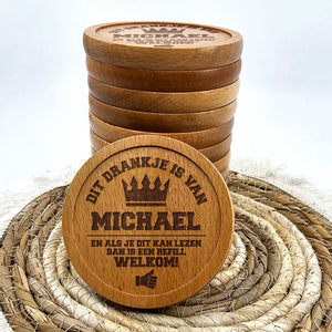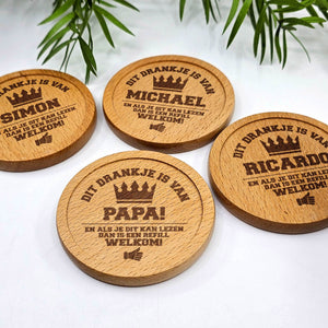 Let op: Hout is een natuurproduct. Hierdoor zal elke gravure iets afwijken van de foto's. Dit komt simpelweg omdat de nerf van het hout bepaald hoe donker de gravure wordt. Dit maakt elke onderzetter wel 100% uniek!