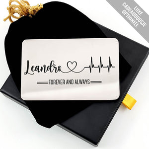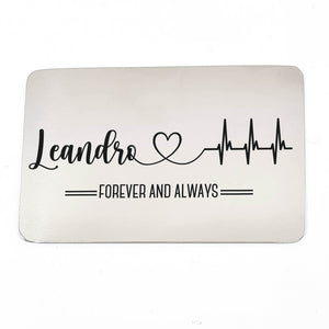 Onze RVS Kaartjes zijn perfect als kaartjes in de portemonnee of als bordje op op een deur. "Heartbeat Forever And Always Stalen Kaartje" is lasergegraveerd met de hand op hoogwaardig RVS-materiaal.