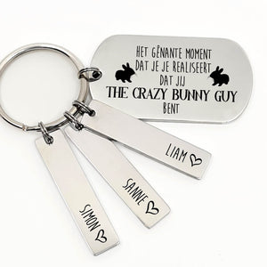 Ben jij ook zo Gek op konijnen dat de buurt jou ziet als de konijnen Meneer? dan is deze Handgemaakte Rvs Sleutelhanger echt iets voor jou! je kan de sleutelhanger zelfs personaliseren met de namen van jou konijnen!