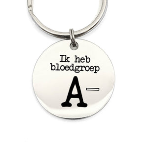 Jij hebt bloedgroep A-, wist je dat het heel handig is om dat bij je te dragen? Daarom hebben wij nu deze mooie "Ik heb bloedgroep A-" in ons assortiment opgenomen. De sleutelhanger is handgemaakt van RVS.
