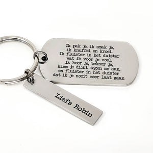 Ben je opzoek naar een attent cadeautje voor jou schatje? dan scoor je hiermee zeker punten! deze mooie handgemaakte sleutelhanger van RVS kan worden gepersonaliseerd met een naam.