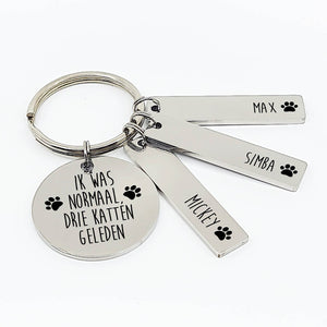 Als kattenbaasje of vrouwtje ben je een speciaal persoon, want je bent natuurlijk de uitverkorenen wanneer je lieve kattenbeestje op schoot komt zitten! Een normaal persoon zou dit nooit kunnen gebeuren... Kan jij je hier wel in vinden? of ken jij iemand die er precies zo over denkt? Dan is deze 'ik was normaal, drie katten geleden' RVS sleutelhanger een origineel en niet normaal cadeau! Personaliseer de sleutelhanger door er de namen van de majestueuze kattenbeestjes er aan toe te voegen
