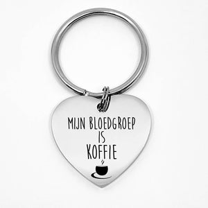 Een kopje koffie hier en een kopje koffie daar, een kopje koffie alleen en een kopje koffie met elkaar. Koffie is leven zeggen sommige. Deze mooie "Mijn Bloedgroep Is Koffie" RVS sleutelhanger is dan perfect.