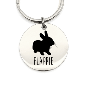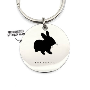 Zet op de puntjes (bijvoorbeeld de naam van je konijn) op het rondje en personaliseer daarmee deze mooie sleutelhanger