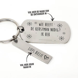 Wie heeft de kerstman nodig? ik heb.... Sleutelhanger. Op veler verzoek is het nu mogelijk om ook een eigen tekst op de dogtag te zetten. Wie ga jij verrassen met deze unieke gepersonaliseerde sleutelhanger?