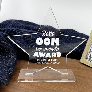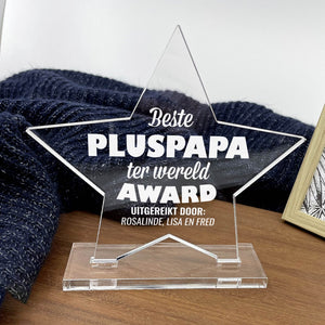 Doe vandaag nog een prachtig plexiglas Award met eigen namen cadeau. Lasergegraveerd met eigen namen van de kinderen.