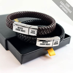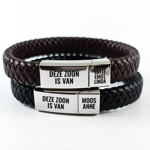 Maak het perfecte gepersonaliseerde Cadeau met maximaal eigen namen. Onze armbanden zijn verkrijgbaar in bruin en zwart leer.