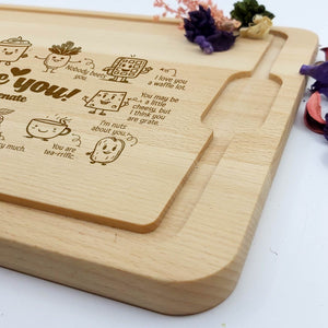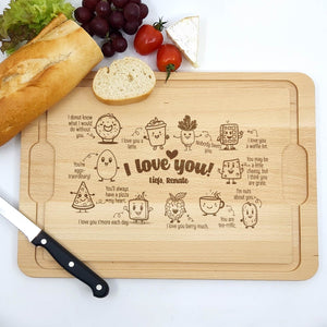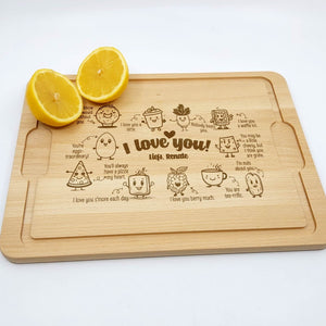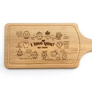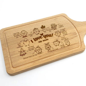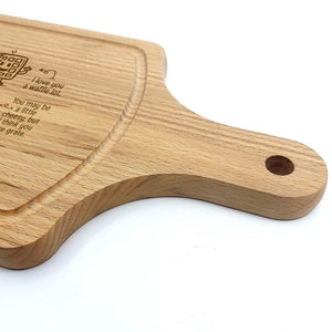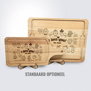 Deze Gegraveerde Hapjesplank is een echte eye-catcher. Wij gebruiken alleen hoogwaardig Europees hout. Elke hapjesplank wordt vooraf behandeld, waardoor het niet kromtrekt door vocht of temperatuurwisselingen. Deze borrelplank is zowel geschikt om op te snijden als te serveren.