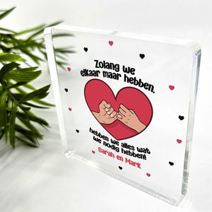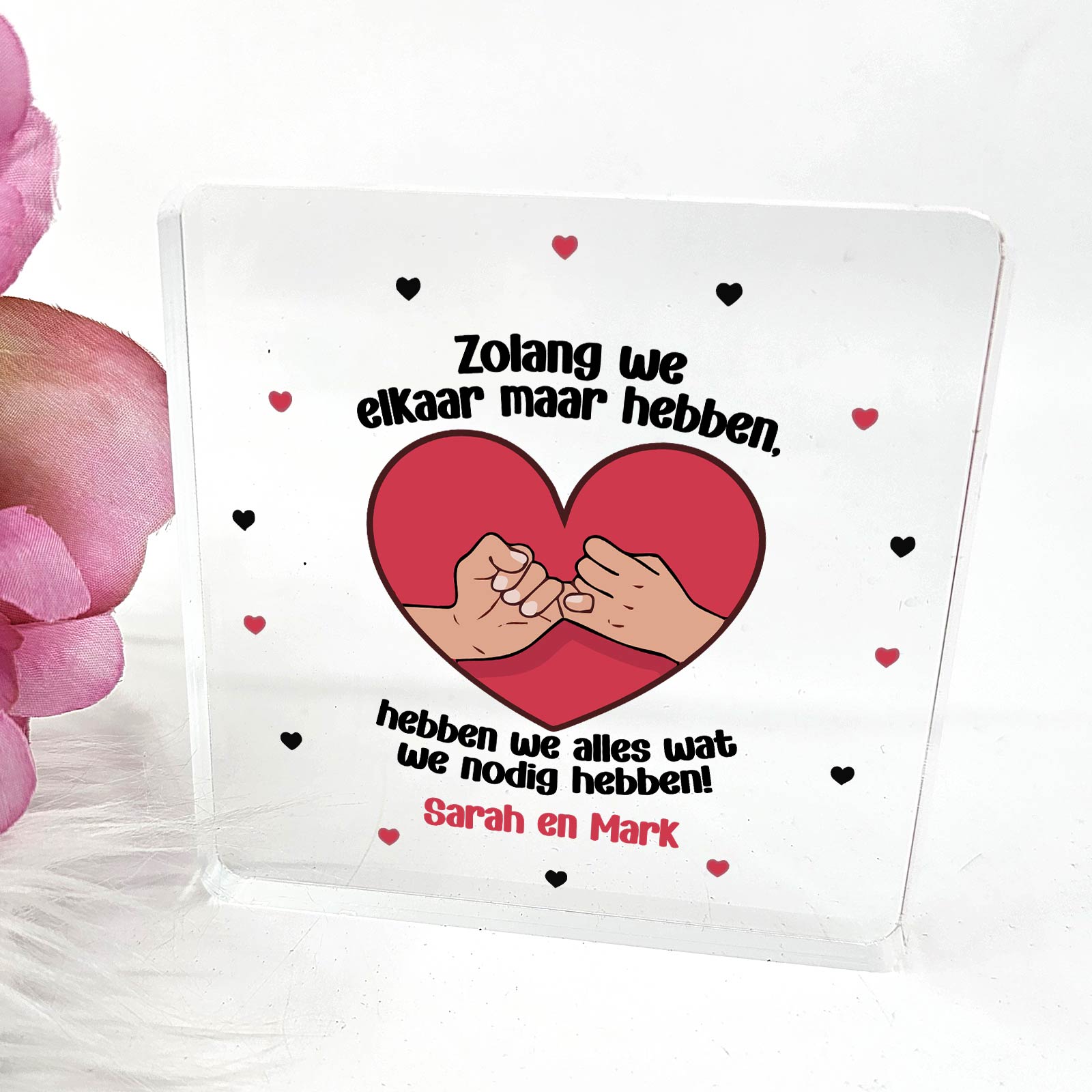 Doe vandaag nog een prachtig plexiglas Aandenken met persoonlijke boodschap cadeau. Lasergegraveerd met eigen namen en een dikte van 1 cm.