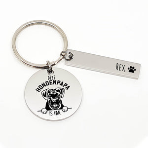 Een echte speelse boxer zoals de jouwe verdient toch zeker wel officieel gemaakt worden als jouw kindje? Verwen jezelf of een ander hondenpapa met deze 'Deze Boxer Hondenpapa Is Van' RVS sleutelhanger, die je kan personaliseren door de naam van je trouwe viervoeter er aan toe te voegen!