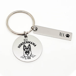 Heb jij ook kinderen met 4 poten, een natte neus en een staart? Dan is deze 'Deze Duitse Herder hondenmama is van' RVS sleutelhanger zeker wat voor jou! Speciaal gemaakt voor de echte Duitse Herder hondenmama's. Onze handgemaakte sleutelhangers kan je personaliseren door de naam van je Duitse Herder toe te voegen!